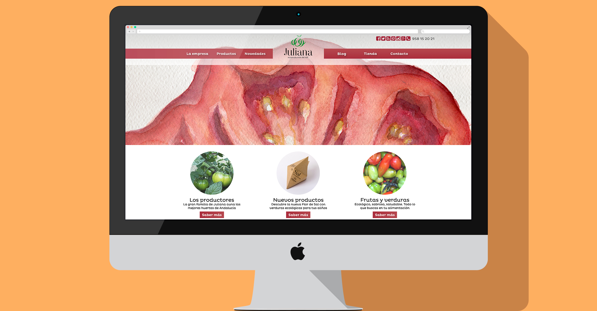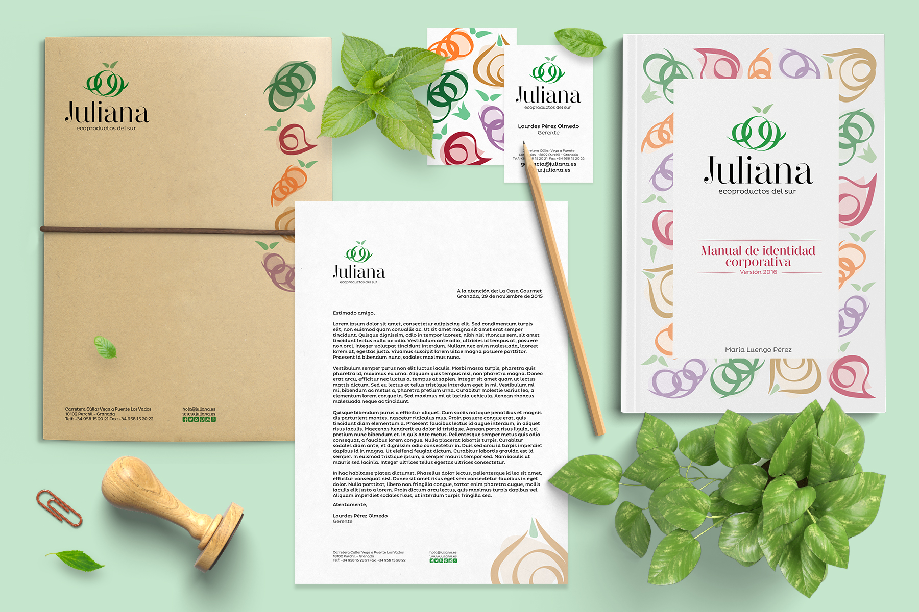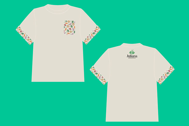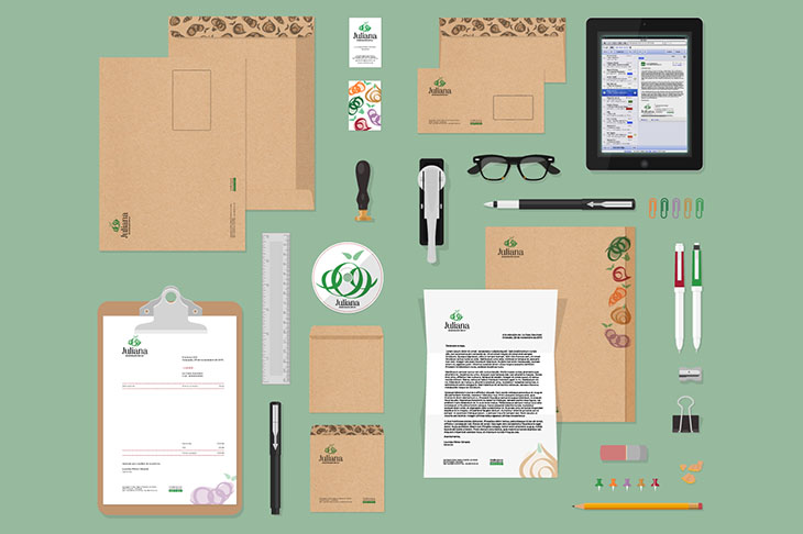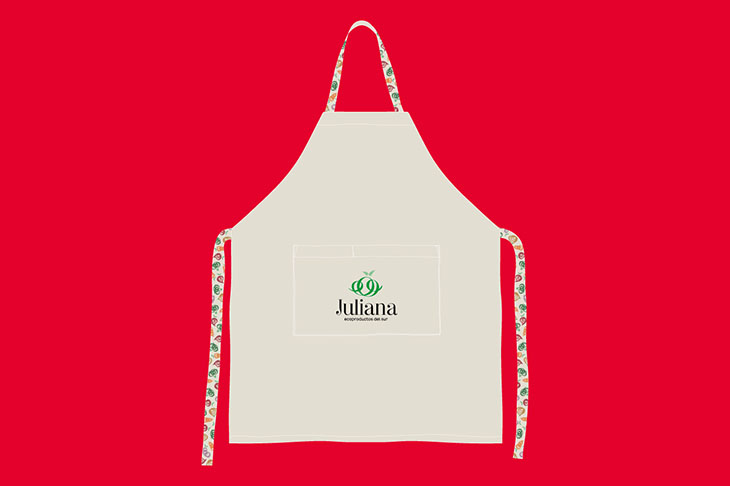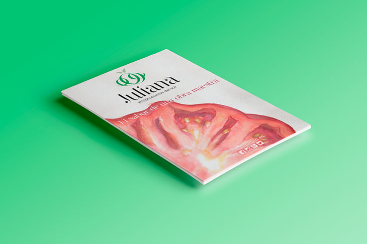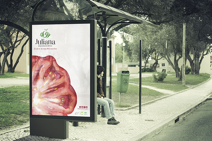 Se remarca la idea de marca gourmet al asociarse sus productos con una obra maestra. Toda la gráfica se complementa con ilustraciones en acuarela de la verdura ecológica que ofrece Juliana.