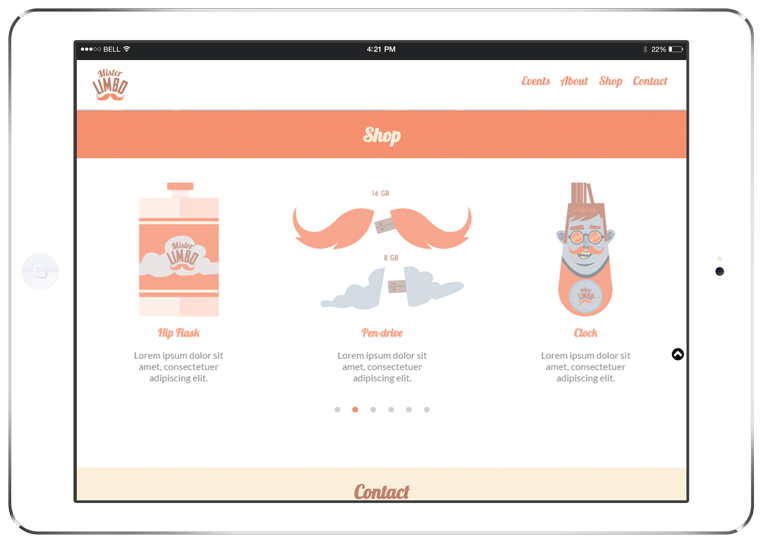 El diseño de la web se basa en la técnica de scroll parallax sucediéndose todas las secciones conforme hacemos scroll vertical.